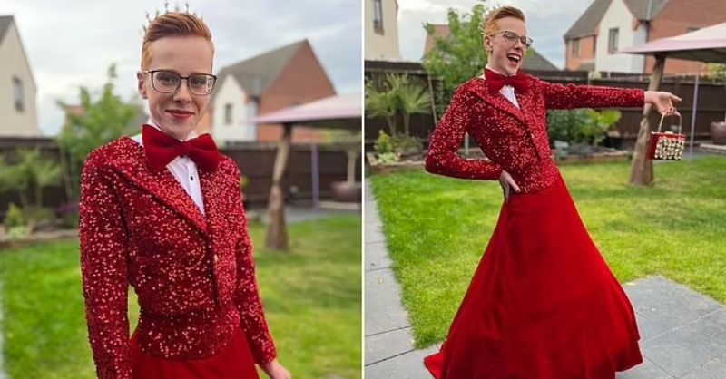 Dressed in a bold red skirt and a tuxedo top adorned with sequins to match his scarlet-colored hair, 16-year-old Korben White took the internet by storm with the...