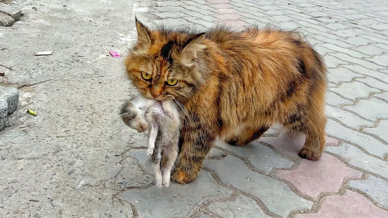A crying mother cat brough her dying kitten to a man. Just unbelievable!