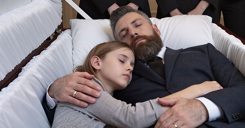 A little girl hugged her father in the eerie coffin. They had been at the wake for hours, and she hadn’t left her side for even a second.