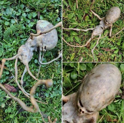 A peculiar discovery in a woman’s garden left internet users scratching their heads. Resembling something out of science fiction, the object featured an oblong skull, a slender torso,...